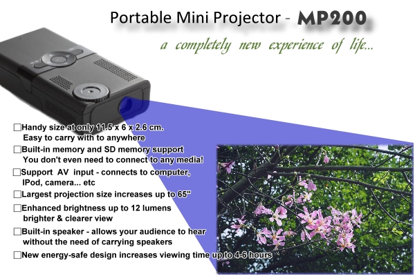 JPEG/BMP (Photo) AVI/MOV/DivX/XviD/3GP/MP4 (Video) (Power point file & PDF professional can be saved as JPEG and play via MP200) |